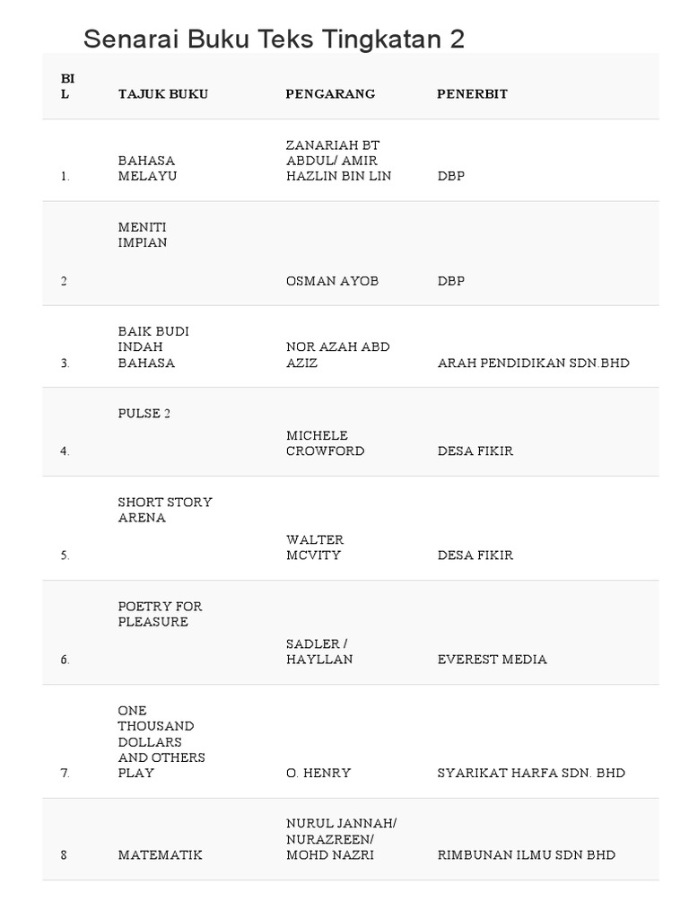 Senarai Buku Teks Tingkatan 2 Pdf